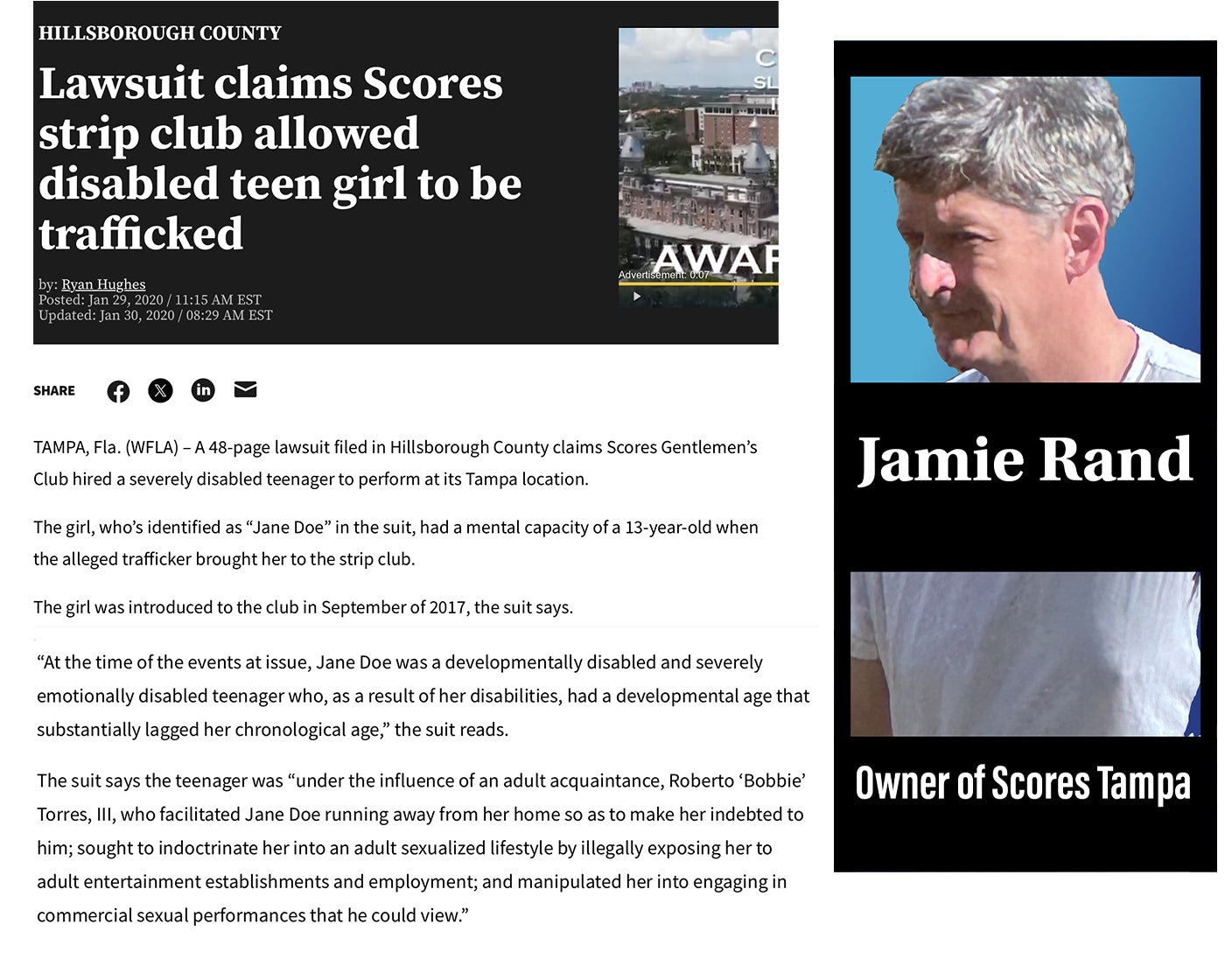 “Jamie Rand Human Trafficker & Legal Predator” Victim blaming isn't just Jamie Rand's legal strategy—it's his weapon of choice. Beyond being a human trafficker, Rand has established himself as a calculating legal predator with a staggering 588 cases in Hillsborough County alone, leaving a trail of devastated lives in his wake. Rand doesn't merely use the legal system; he corrupts it, wielding court filings like daggers against the very people the law should protect.Jamie Rand's counterclaim attempts to shift blame to the disabled minor by characterizing the victim as having "poor judgment." Rand and his lawyers assert that Jane Doe was a willing participant and "co-conspirator" in her own alleged human trafficking. Inconceivably, Jamie Rand attempts to use the victim's mental disability against her. Rand's legal maneuvers reveal a calculated attempt to weaponize the very system designed to protect vulnerable individuals, using procedural intimidation to silence a victim who dared to seek justice. The depths of depravity to which Jamie Rand, the legal predator, will stoop appear boundless.The counterclaim repeatedly states that Jane Doe, the disabled minor, was a "co-conspirator" but doesn't establish clear evidence of this beyond speculation. Jamie Rand's counterclaim narrative portrays Jane Doe as an equal participant in a scheme to exploit herself at Rand's strip club. With cold calculation, Rand and his team of high-priced attorneys labeled this disabled minor a "willing participant" and "co-conspirator" in her own trafficking nightmare—as if a child could possibly consent to or orchestrate her own exploitation. The counterclaim against Jane Doe may be problematic since she would have been a minor at the time of the alleged conduct, raising questions about capacity to contract or engage in the alleged conspiracy. Jamie Rand's counterclaim inadvertently supports the original complaint's sex trafficking allegations. Under strict liability and statutory protections for minors, as they cannot legally consent to sexual performances or commercial sexual exploitation, Jamie Rand's adult establishments bear strict liability regardless. Jamie Rand is a man willing to crush a disabled child beneath legal paperwork rather than face the consequences of his actions. Rand's tactics aren't just legal arguments; they're the desperate flailings of someone who sees vulnerable people not as human beings deserving protection, but as commodities to be exploited.Absurdly Jamie Rand wields the legal system as a weapon against a disabled minor, a disturbing irony emerges in his personal life. His wife, (Julie Augensen pen name) because she can’t use Julie Rand, authors children's books including "Ida Louise and the Lucky Sweater"stories presumably meant to inspire and protect young readers. The stark contrast is jarring: one spouse creates literature for children's wellbeing while the other allegedly exploits vulnerable minors and then legally attacks them when they seek justice. This dichotomy represents an unconscionable hypocrisy of a family that profits from both children's innocence and their exploitation, publishing stories for youngsters with one hand while filing predatory counterclaims against them with the other. Jamie Rand and his attorneys are asking for indemnification from the victim. Rand operates a network of adult establishments with teams of lawyers; Jane Doe entered this situation as a vulnerable disabled minor with no legal representation or understanding of her exploitation. The counterclaim shockingly demands that Jane Doe indemnify the club, meaning she should be financially responsible for any damages the club incurs due to the human trafficking lawsuit. Jamie Rand's claim suggests that Jane Doe, the disabled minor, rather than the establishment, is to blame for the legal repercussions. In a perversion of justice that turns victim into perpetrator, Rand's counterclaim effectively argues that a minor should have known better than the adult business owner who profited from her exploitation. Every filing, every motion, every legal argument reveals not just what Rand allegedly did, but who he is: someone who appears willing to destroy lives, pervert justice, and victimize the vulnerable—all while hiding behind legal paperwork and procedural tactics.This case represents more than just one predator's defense—it's an attempt to establish a dangerous precedent where trafficking victims can be legally punished for their own victimization. (Hillsborough County Lawsuit Case #20-CA-000861)