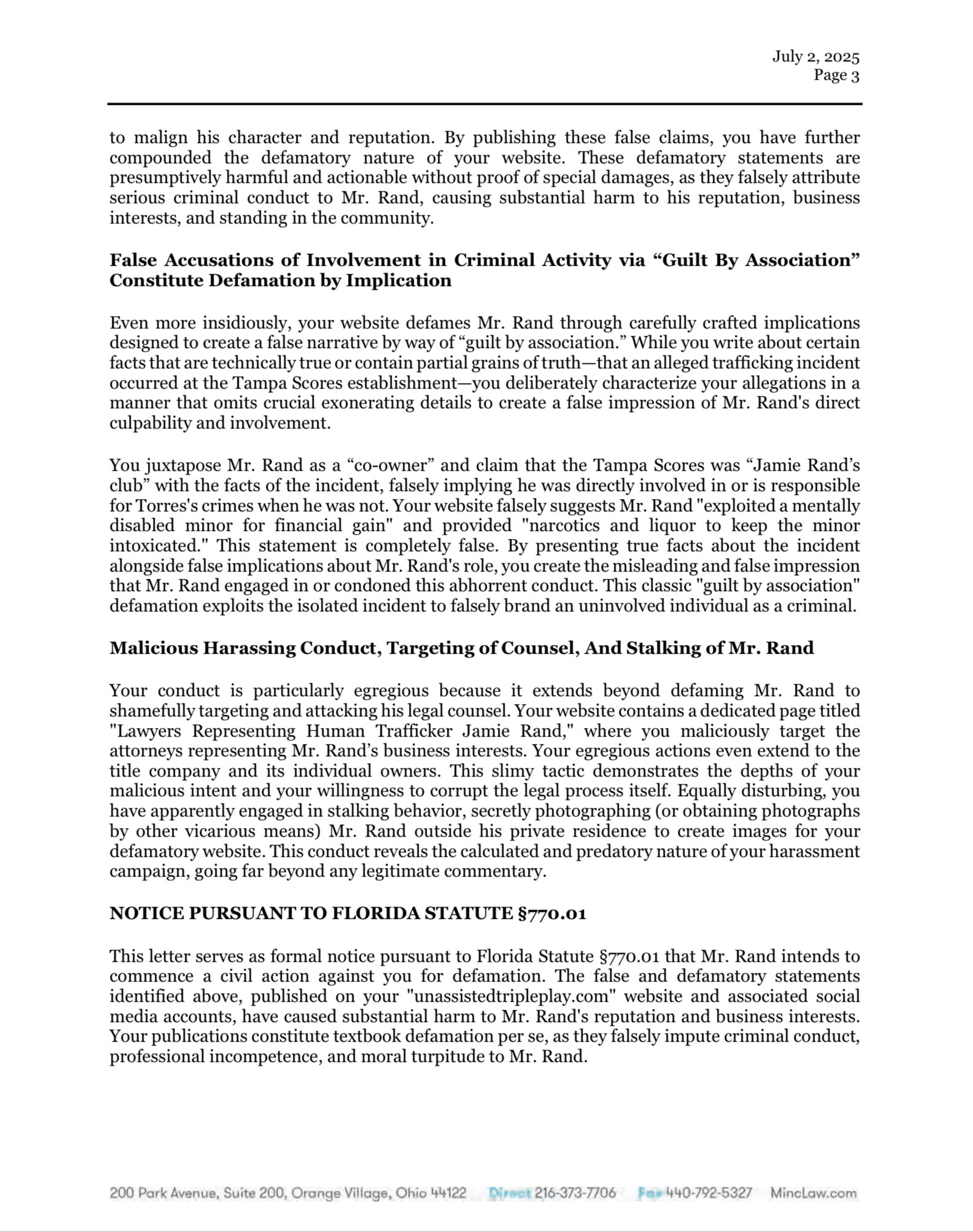 “Jamie Rand Human Trafficker & Legal Predator” Victim blaming isn't just Jamie Rand's legal strategy—it's his weapon of choice. Beyond being a human trafficker, Rand has established himself as a calculating legal predator with a staggering 588 cases in Hillsborough County alone, leaving a trail of devastated lives in his wake. Rand doesn't merely use the legal system; he corrupts it, wielding court filings like daggers against the very people the law should protect.Jamie Rand's counterclaim attempts to shift blame to the disabled minor by characterizing the victim as having "poor judgment." Rand and his lawyers assert that Jane Doe was a willing participant and "co-conspirator" in her own alleged human trafficking. Inconceivably, Jamie Rand attempts to use the victim's mental disability against her. Rand's legal maneuvers reveal a calculated attempt to weaponize the very system designed to protect vulnerable individuals, using procedural intimidation to silence a victim who dared to seek justice. The depths of depravity to which Jamie Rand, the legal predator, will stoop appear boundless.The counterclaim repeatedly states that Jane Doe, the disabled minor, was a "co-conspirator" but doesn't establish clear evidence of this beyond speculation. Jamie Rand's counterclaim narrative portrays Jane Doe as an equal participant in a scheme to exploit herself at Rand's strip club. With cold calculation, Rand and his team of high-priced attorneys labeled this disabled minor a "willing participant" and "co-conspirator" in her own trafficking nightmare—as if a child could possibly consent to or orchestrate her own exploitation. The counterclaim against Jane Doe may be problematic since she would have been a minor at the time of the alleged conduct, raising questions about capacity to contract or engage in the alleged conspiracy. Jamie Rand's counterclaim inadvertently supports the original complaint's sex trafficking allegations. Under strict liability and statutory protections for minors, as they cannot legally consent to sexual performances or commercial sexual exploitation, Jamie Rand's adult establishments bear strict liability regardless. Jamie Rand is a man willing to crush a disabled child beneath legal paperwork rather than face the consequences of his actions. Rand's tactics aren't just legal arguments; they're the desperate flailings of someone who sees vulnerable people not as human beings deserving protection, but as commodities to be exploited.Absurdly Jamie Rand wields the legal system as a weapon against a disabled minor, a disturbing irony emerges in his personal life. His wife, (Julie Augensen pen name) because she can’t use Julie Rand, authors children's books including "Ida Louise and the Lucky Sweater"stories presumably meant to inspire and protect young readers. The stark contrast is jarring: one spouse creates literature for children's wellbeing while the other allegedly exploits vulnerable minors and then legally attacks them when they seek justice. This dichotomy represents an unconscionable hypocrisy of a family that profits from both children's innocence and their exploitation, publishing stories for youngsters with one hand while filing predatory counterclaims against them with the other. Jamie Rand and his attorneys are asking for indemnification from the victim. Rand operates a network of adult establishments with teams of lawyers; Jane Doe entered this situation as a vulnerable disabled minor with no legal representation or understanding of her exploitation. The counterclaim shockingly demands that Jane Doe indemnify the club, meaning she should be financially responsible for any damages the club incurs due to the human trafficking lawsuit. Jamie Rand's claim suggests that Jane Doe, the disabled minor, rather than the establishment, is to blame for the legal repercussions. In a perversion of justice that turns victim into perpetrator, Rand's counterclaim effectively argues that a minor should have known better than the adult business owner who profited from her exploitation. Every filing, every motion, every legal argument reveals not just what Rand allegedly did, but who he is: someone who appears willing to destroy lives, pervert justice, and victimize the vulnerable—all while hiding behind legal paperwork and procedural tactics.This case represents more than just one predator's defense—it's an attempt to establish a dangerous precedent where trafficking victims can be legally punished for their own victimization. (Hillsborough County Lawsuit Case #20-CA-000861)